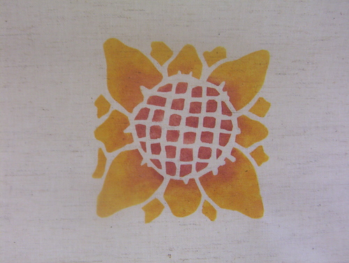 The Sunflower: Stencil can be a medallion or applied as sunny border. Shown here in gold and rust. 5 1/2 inches. $40.00 per motif.