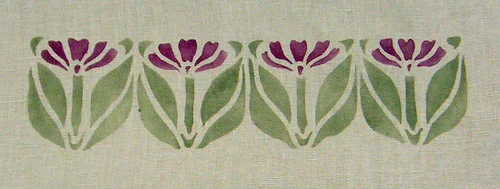 Shepherd's Purse Border: A gentle, Art Nouveau border, 3" high x 6" wide per repeat, here in lavender & sage. $40.00 per repeat.