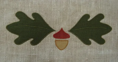 Acorn Medallion: Shown here in natural linen with brown and rust. this can make a nice composition with the Acorn Single, eight inches x eight inches. $45.00