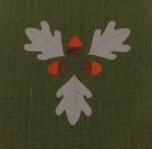 Acorn, Single : Here in loden, antique gold and rust. This design can make a nice composition with the Acorn Medallion, 8 1/2 inches across, $40.00