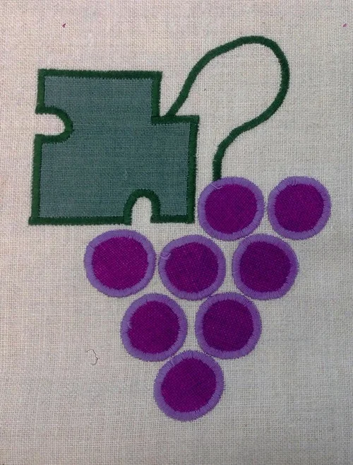 Bungalow Grape: Shown here in purple and forest, six inches high, $40.00 per motif