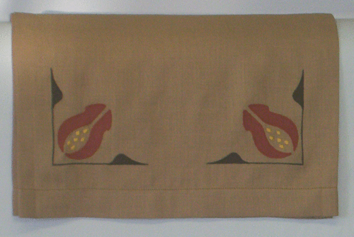 Pomegranate Corner: another classic Arts & Crafts motif...from William Morris to Gustave Stickley, this lovely fruit has been an inspiration. Shown here, two together at each corner in terra cotta, forest and gold. The fruit itself is 4 1/2" high. $40.00 per motif