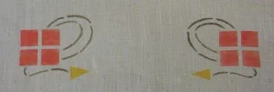 Checkerberry Stencil: Use this design one by one or as a border. Shown in tangerine, sage and bright gold. Each square is 1 1/4 inches. Available as a template for purchase. $25.00 per motif.