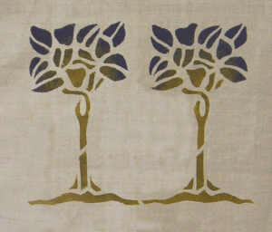 Tree Stencil: Shown in blue with pear stippled in to the leaves. We hand embroider an outline around these designs for our pillows, but so many people asked for them as stencils, we're showing them now! $45.00